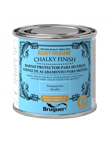 Laca incolora con acabado mate indicada para decorar los muebles pintados con el efecto tiza Rust-Oleum ChalKy Finish.